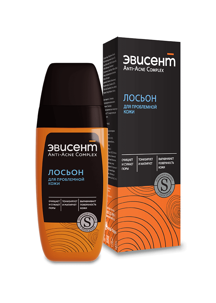 - Эвисент лосьон для проблемной кожи очищает и сужает поры, тонизирует и матирует, выравнивает поверхность кожи.